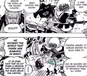 Nami, Usopp, and Chopper encounter this Ryuma in Hogback’s mansion when Hogback sends him to stop the Straw hats. Hogback states that he is a “General Zombie” who holds the body of a warrior from Wano Country in the New World, further pointing out that the legend of how this samurai cut down a flying dragon has been handed down for centuries.