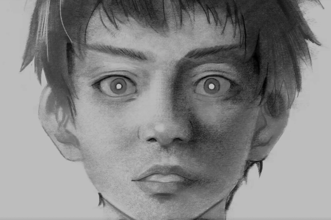 Photorealistic backgrounds, monochrome, humans that are shaped not with the details of animation but of life.