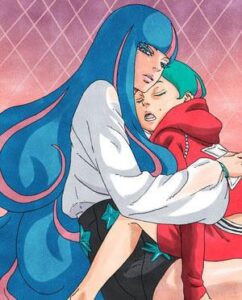 Answer: I wanted them to stand out from usual Boruto/Naruto characters. And since they are two characters with extraordinary abilities, I thought a cosmic motif would suit their design
