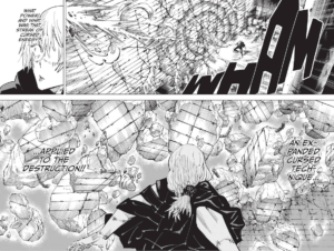 For example, he cut through Mahito’s arm with a ratio strike, despite Mahito using cursed energy to defend himself.