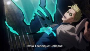 While the Ratio Technique was previously limited to dividing and targeting a single object, the introduction of Collapse greatly increased this capability. Shockwaves of cursed energy tear through the technique’s effective hit zone, demonstrating the devastating effects of this method.