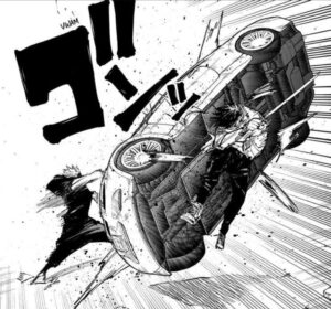 Yuji’s strength is often highlighted in the series but this one has extra presentation points for being unexpected.