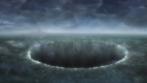If you look carefully, the hole in the ocean resembles Enies Lobby, which now confirms that Enies Lobby was also a vanquished Kingdom Imu and the Five Elders erased centuries ago the same way.