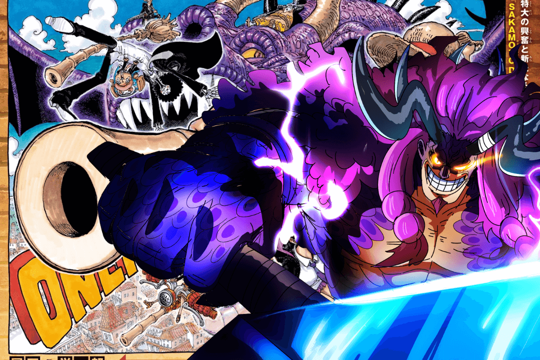 In Chapter 1128: “RPG”, we got a cover page in color showing the Straw Hats as magicians and behind them is a purple dragon.