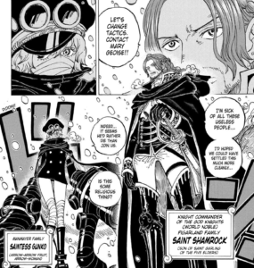 This could dispel the theory that Gunko was an orphan or that Shamrock was a clone taken to become a soldier or God’s Knights and further leans on the idea that Celestial Dragons have lineages or can be trained to serve the military order.