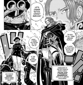 This could dispel the theory that Gunko was an orphan or that Shamrock was a clone taken to become a soldier or God’s Knights and further leans on the idea that Celestial Dragons have lineages or can be trained to serve the military order.