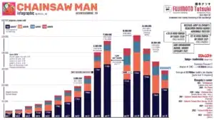 Keep in mind that the bargraph showcases sales of only the physical volumes of Chainsaw Man in Japan but the readership on Jump+ is still the same as it was at the end-part of 2023.