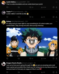 Recently, on May 5, 2024, the English voice actor of Izuku Midoriya or Deku, Justin Briner, took to Twitter, requesting that these fans stop asking him about ships at convention panels.