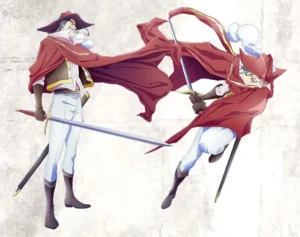The main key visual and character illustrations feature the main characters of the series: Flare, Cyrano, D.R. and Shimotsuki Ryuma.