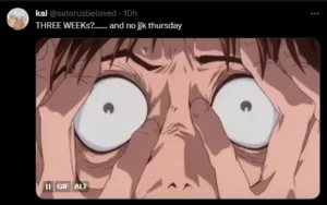 Then WSJ magazine itself (not Akutami) will be on a break between Jan 9-21 and Chapter 248 will officially drop in WSJ Issue #8 on Jan 22. However, the leaks for that chapter will drop on Jan 17, so that means no new JJK content for 3 weeks!
