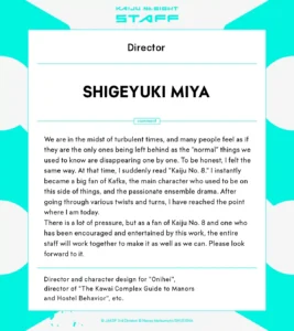 At work, Kafka crosses paths with the highly motivated Reno Ichikawa. Reno’s undying determination to join the Defense Force leaves no room for failure. His perseverance reawakens Kafka’s ambition of standing next to Mina as they protect humanity from Kaiju together.