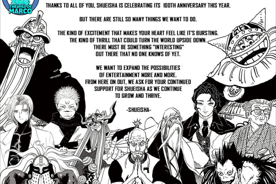 On January 1, 2026, Shueisha released a Special 100 Year Anniversary message, with a translation from user “The Will of Marco”.