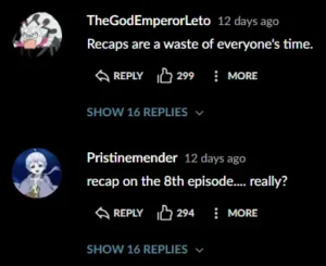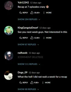 Comments under the episodes were filled with disappointing remarks from fans, saying that the staff wasted everyone’s time by putting a recap episode right at episode 7 for a seasonal anime.