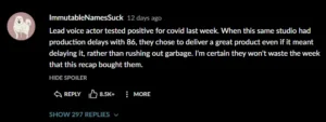 However, some claim that the delay was due to the voice actors being infected by COVID-19.