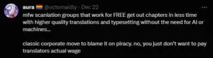 Other fans on Twitter back them up, saying that scanlation sites provide better quality translations before the official ones drop for FREE.