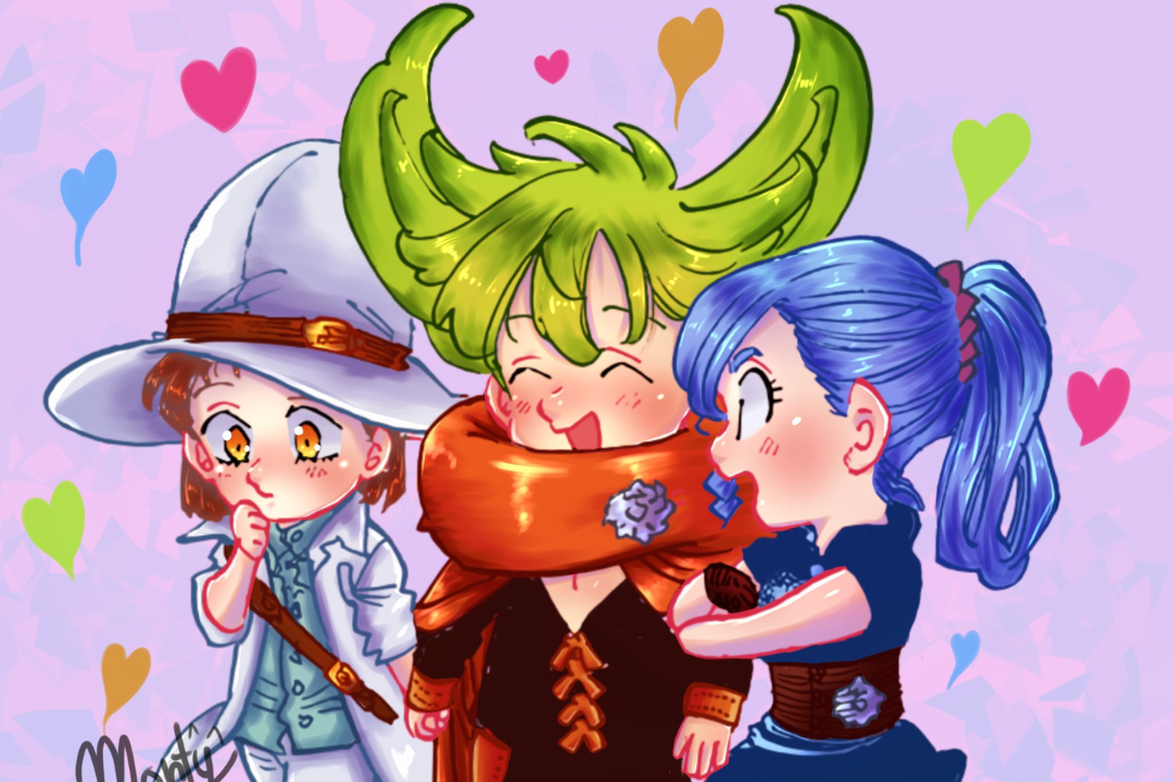 Nasiens leans on their lover, saying that even if he is weird, they still love her, and they are about to have a moment when Anne steps in, telling them to stop flirting for a second so she can join in.