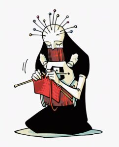 We now have a colored image of the pinhead-like shikigami holding a large spool of thread summoned by the Cursed Technique of Maseru Takeda (the old Curse User) called Marmalade Boy, first shown in Chapter 4: “The Boy Who Kept Repeating”.