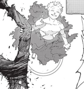 When the series ended, we still did not get an answer as to what Tomura’s quirk was but we learn in the fanbook that it is actually the Quirk that produces a repulsion ring under All for One’s feet.