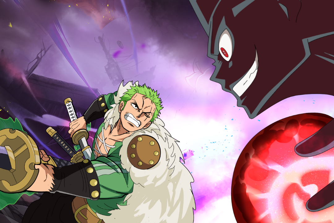 Considering that Zoro is now dealing with real Giants turned into infectious demons that can turn anyone into Imu’s slaves and not ones made of regular stone, he might try something less meatheaded.